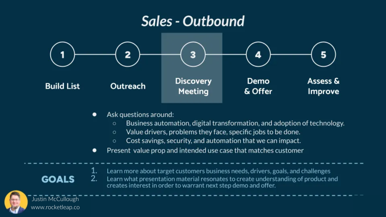 In this case, its an early-stage product and does not have strong inbound assets and seeking to drive customer validation and learning by engaging in prospects directly using a discovery and demo approach. If you are a product company, you should explore “disco demos” or “disco calls”.