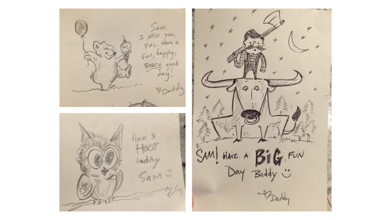 It was an example of this small act where he would pack his sons lunch and put in a little drawing.  His son can’t read yet.  He goes to pre-k twice a week.