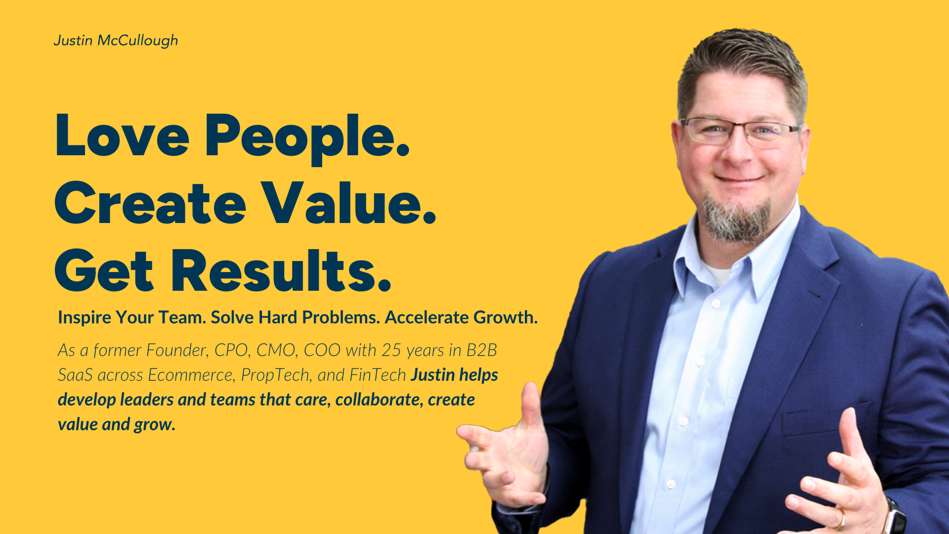 As a former Founder, CPO, CMO, COO with 25 years in B2B SaaS across Ecommerce, PropTech, and FinTech Justin helps develop leaders and teams that care, collaborate, create value and grow.